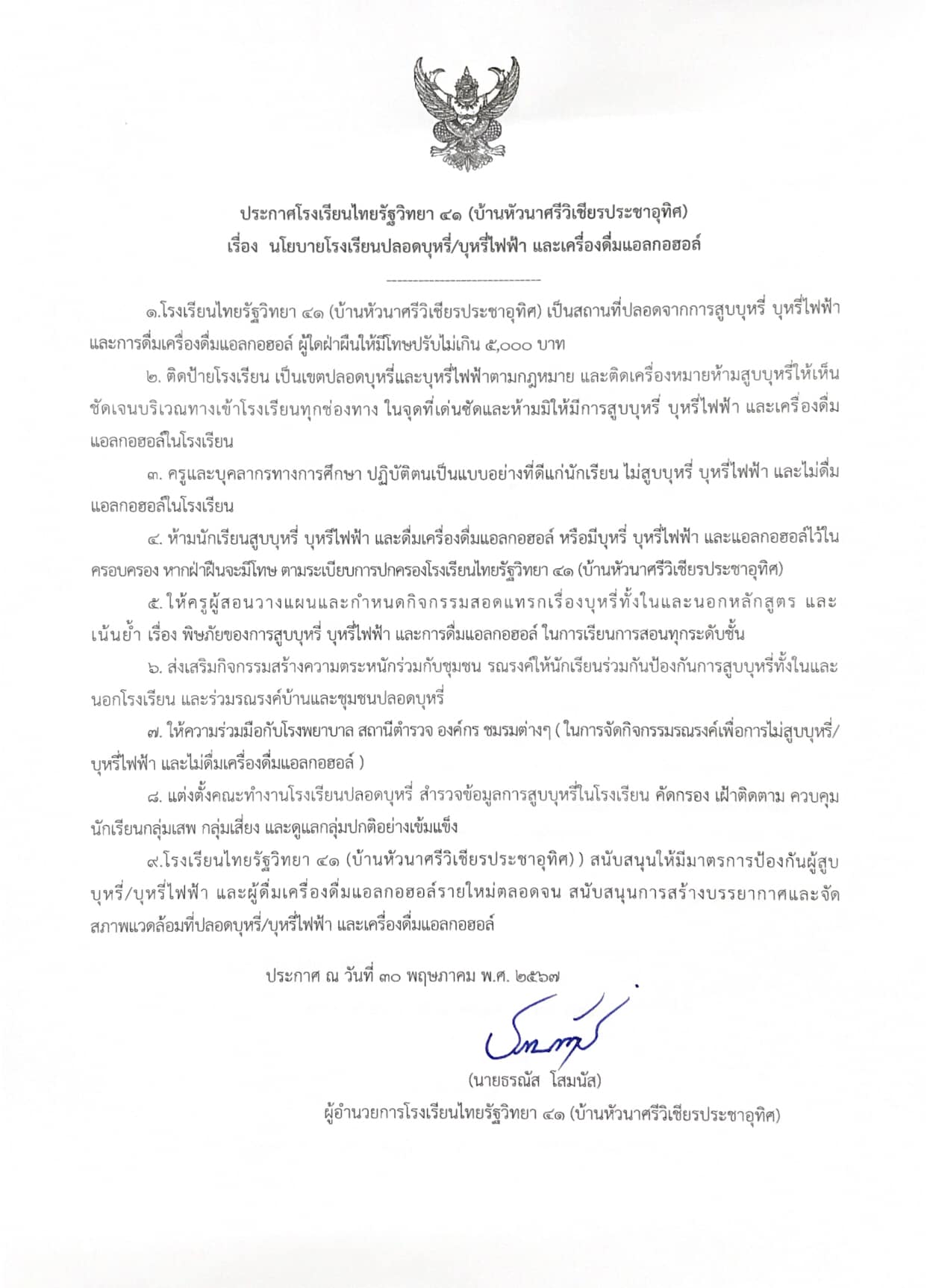 ประกาศโรงเรียน ประกาศ เรื่อง นโยบายโรงเรียนปลอดบุหรี่/บุหรี่ไฟฟ้า และเครื่องดื่มแอลกอฮอล์ Byadmin@thairat41 กรกฎาคม 6, 2024กรกฎาคม 18, 2024 ประกาศ โรงเรียนไทยรัฐวิทยา ๔๑ (บ้านหัวนาศรีวิเชียรประชาอุทิศ) เรื่อง นโยบายโรงเรียนปลอดบุหรี่/บุหรี่ไฟฟ้า และเครื่องดื่มแอลกอฮอล์